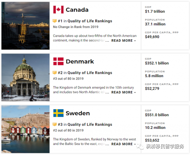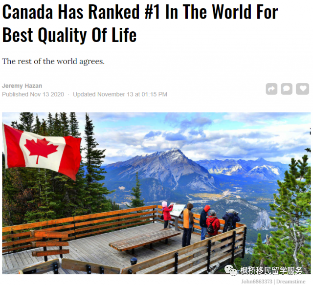 2020年,全世界国家生活质量排名,加拿大再次荣登榜首!这已经是加拿大连续五年在该排名中获得第一了!