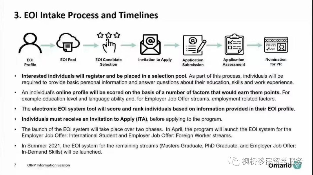 根据安省省提名办公室的最新指示,EOI系统将分7个步骤进行。顺序依次是: