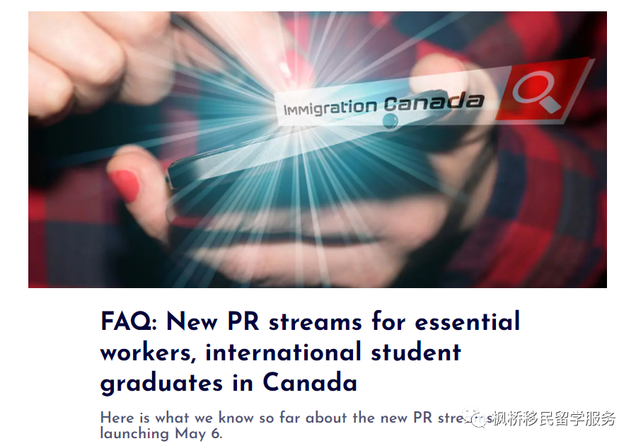 特别注明:CICNEWS并不是移民局的新闻发布网站,只是一个民间的移民信息发布中心。大部分消息靠谱,也有部分消息始终未获证明。但是这次的消息跟枫桥负责人Janelle Wang的预测基本内容是一致的,申请的方式应该是在线申请,文件需要能证明自己符合申请条件,同时可以参考CEC申请EE的文件清单。
