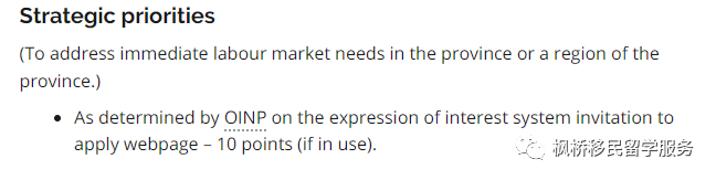 根据省劳务市场和社区需求,由OINP在EOI系统中决定的分数,10分。这个就太主观了。不知道在抽选的时候是否会公布当次给这个10分的标准。