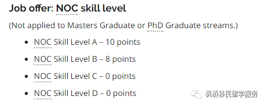 工作offer的等级和类别、offer的地点、是否符合安省的行业需求和区域需求,会是较为重要的得分点。看起来专业和工作经验就太重要了。而是否有加拿大学习和工作经验,会成为额外得分的机会。目前打分表提示,0类岗位连0分都不给,那就是不能申请的意思吧?拭目以待是否会改变。