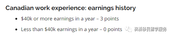 有一年或一年以上年薪在4万加币以上的,得3分;4万年薪以下不得分。有钱真是硬道理。