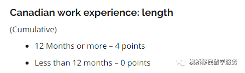 一年以上加拿大本土工作经验,4分;没有或者一年以下,0分。简单计算。我爱。